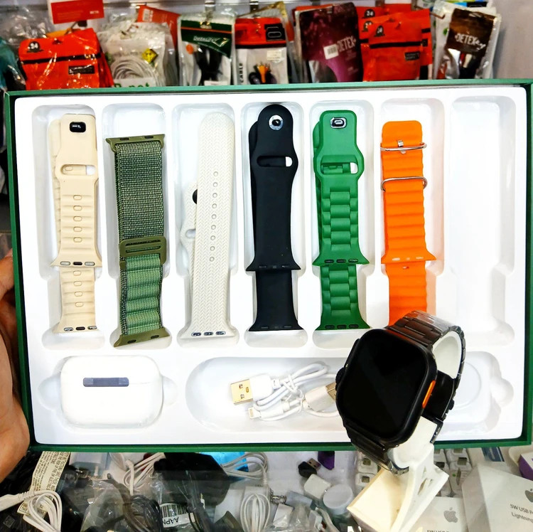 محتویات : ساعت + چند بند (مثلاً ۷ بند) و در برخی پکها ایرپاد پرو همراه ساعت.