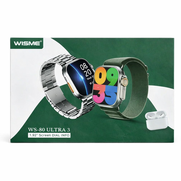 ساعت هوشمند ویسمی مدل WS‑80 Ultra 3 یک اسمارتواچ طرح اولترا است که با طراحی بزرگ و مستطیلی، برای استفاده روزمره، ورزشی و رسمی و برای آقایان و بانوان در نظر گرفته شده است. این مدل ادامه نسل WS‑80 Ultra 2 است و معمولاً با پک چندبندی و تأکید روی مکالمه بلوتوثی و امکانات سلامتی و ورزشی عرضه میشود.