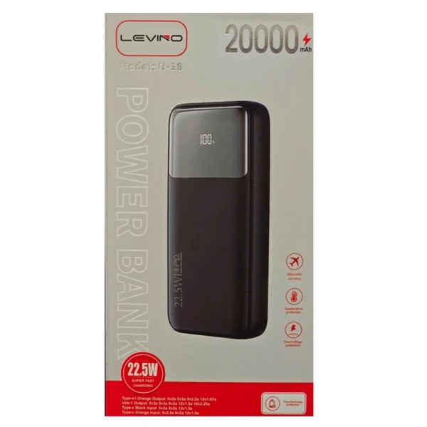 شارژر همراه 20000 میلی آمپر ساعت Levino مدل N-18 با توان خروجی 22.5