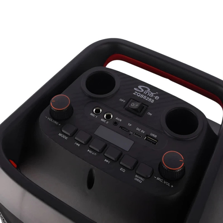 اسپیکر Sing‑E ZQS 8288 یک سیستم صوتی حرفهای قابل حمل است که ترکیب صدای قدرتمند، طراحی کارائوکه و جلوههای نور جذاب را در یک دستگاه جمع کرده است. این اسپیکر دارای دو درایور ۸ اینچی است که صدایی شفاف، استریو و بیس عمیق تولید میکنند. با توان خروجی ۴۰ وات، میتواند محیطهای بزرگتر مثل مهمانی یا فضای باز را بهخوبی پوشش دهد.