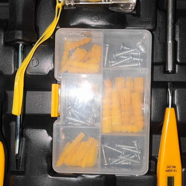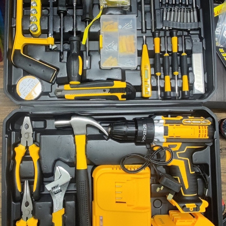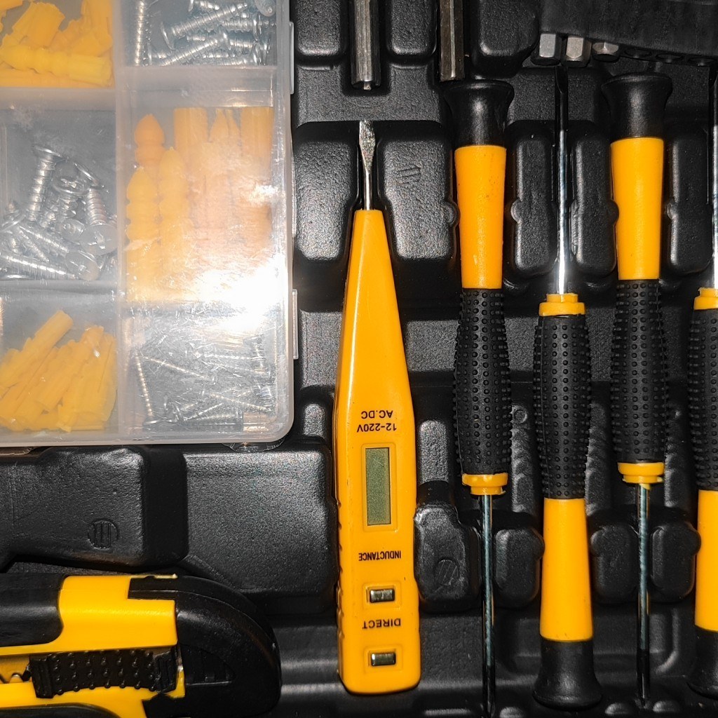 🟡😍دارای کلیه ابزارهای مصرفی شامل: آچار فرانسه سایز۸، انبردست، دمباریک، چکش،بکس تک سایز ۴ تا ۱۳، متر ۳ متری، پیچ گوشتی دوسو و چهارسو سایز بزرگ، پیچ گوشتی نوک خور، مته آهن سایز ۵ و ۶ و ۸، مته دیوار سایز ۵ ،۶ و ۸، مته برگی سایز ۱۲ و ۱۶، ۹ عدد نوک پیچ گوشتی،تبدیل نوک پیچ گوشتی به بکس چسب برق، کاتر،فازمتر دیجیتال،۵ عدد تیغ کاتر، دو سایز پیچ گوشتی موبایلی دو سو و دو سایز پیچ گوشتی موبایلی چهارسو، کمان اره چوب و فلز، مجموعه سایزبندی پیچ و رولپلاک